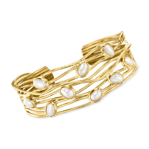 Ross-Simons is the authority on fashionable must-haves. Polish off your ensembles with this ultra-chic cuff bracelet! Crafted in polished 18kt yellow gold over sterling silver, the organic multi-row design is adorned with nine 7x5mm cultured freshwater oval pearls that show off a decadent shimmer. Slip-on, white pearl highway cuff bracelet. Each Ross-Simons item arrives in a fine jewelry presentation box. Shop Ross-Simons jewelry risk-free as all items include a 30-day, 100% money-back guarantee.