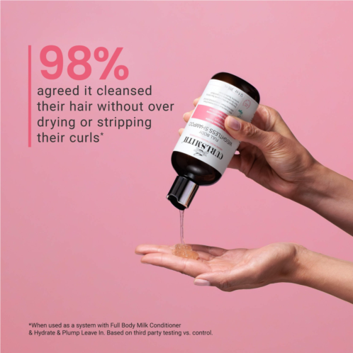 Clinical Results: Based on an independent study on 118 people with wavy, curly, and coily hair when used as a system with Full Body Milk Conditioner and Hydrate & Plump Leave-In: