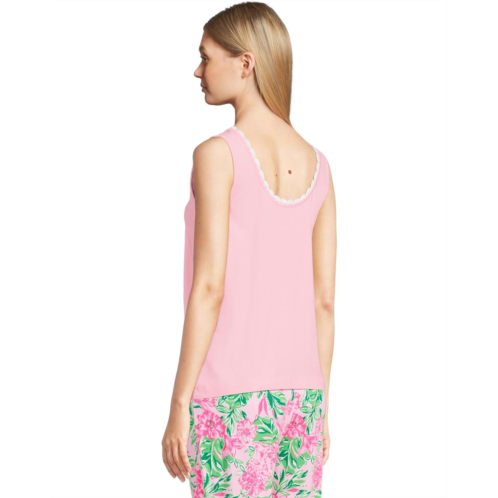 Flex in style wearing the Lilly Pulitzer Gabbie Crochet Trimmed Knit. This straight bra-friendly tank top features scoop neckline, sleeveless style, scalloped crochet trim detail and branded hardware.