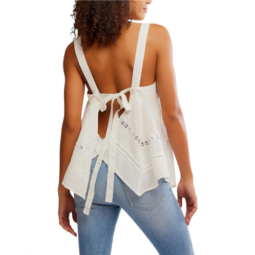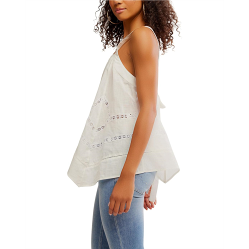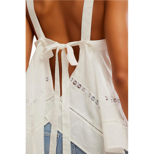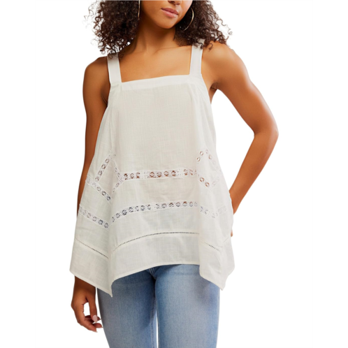 Flaunt a stunning style donning the Free People Charlotte Tunic Top. The pull-on style top is designed with a squared neckline, shoulder straps, thick straps with adjustable buttons, ribbon tie at open back, handkerchief hem, lace, and ladder inlays.