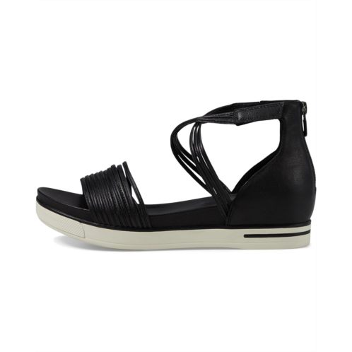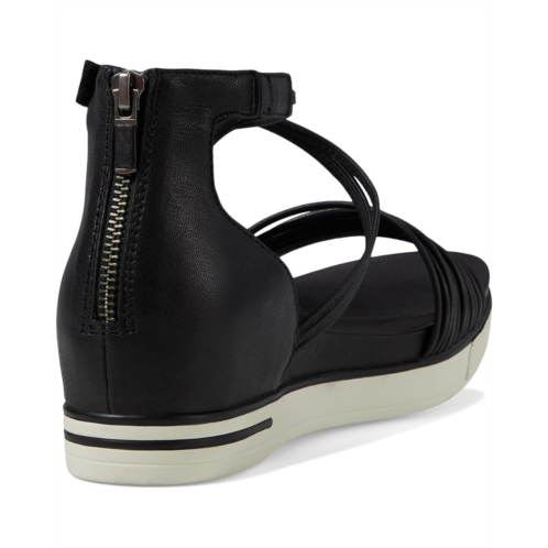 Keep going through the streets wearing Eileen Fisher Shea footwear. It features leather upper, breathable leather lining, and molded footbed for comfort. A multi-band design with crossing ankle strap has a hook-and-loop strap to adjust the fit. A back zip for ease to get the sandal on and off.