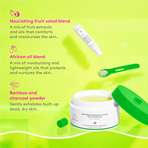 - Nourishing Fruit Salad Blend: A mix of non-fragrant, soothing fruit extracts (blueberry, kiwi, and strawberry) and replenishing fruit oils (cranberry seed oil, acai fruit oil, and watermelon seed oil) that comforts and moisturizes the skin.