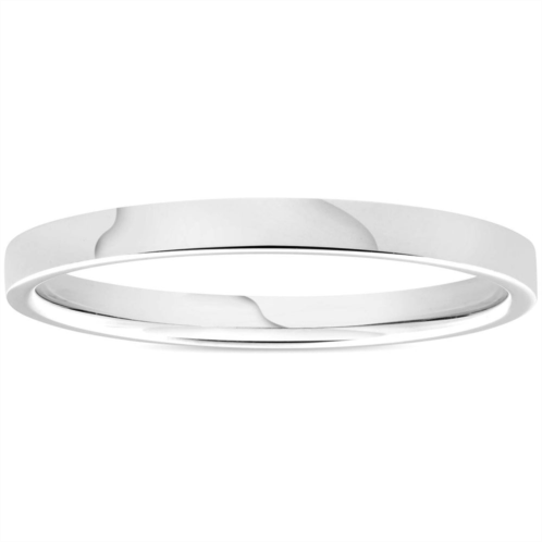 This classic flat wedding band measures 2mm wide and is made of solid 950 platinum. The inside edge is rounded for comfortable wear, comfort fit.