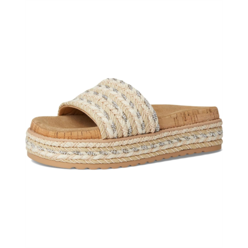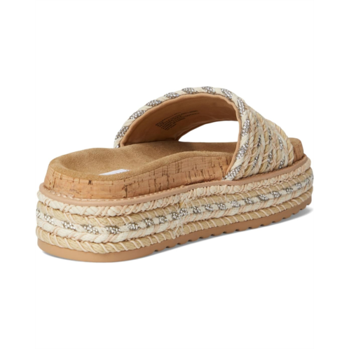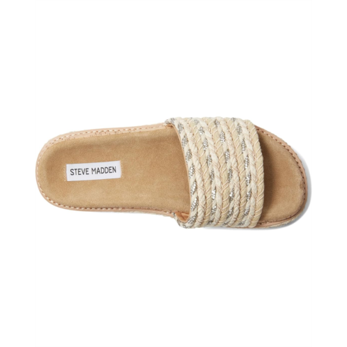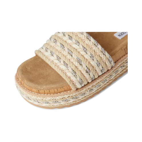 The Steve Madden BELLER sandals secured a woven raffia wrapped flatform sole with a matching wide slide strap for a super comfy textured look. Crafted from synthetic rubber upper, polyurethane lining, and rubber insole.