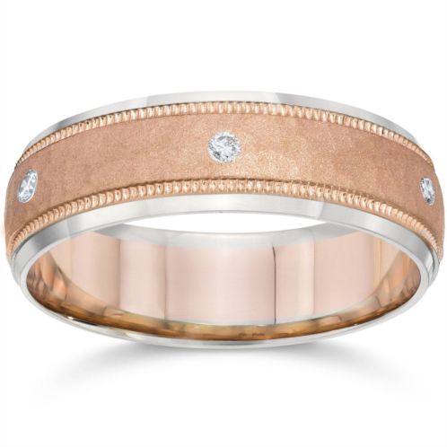 [US] Pompeii3 mens diamond 14k rose & white gold hammered two tone wedding band