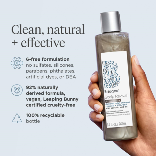 - Salicylic Acid (BHA) 3%: Medicated active relieves dandruff and psoriasis symptoms.