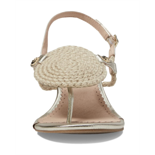 Vachetta calf leather upper with an embossed coiled jute rope on the top and ornamented goldtone accents on the strap.