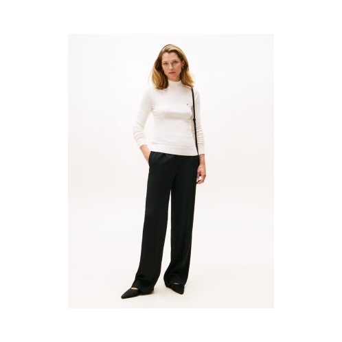 Tommy Hilfiger women's pant. Made from flowing viscose twill, this pair is designed in a roomy, wide-cut leg, structured with pleats for a more elevated look. The smooth, tonal elastic waist band allows for maximum comfort without compromising style.