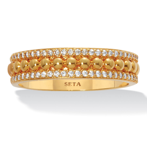 [US] PalmBeach Jewelry triple row yellow gold-plated round crystal band ring