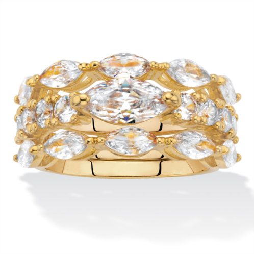 [US] PalmBeach Jewelry 4.30 cttw. marquise-cut and round cz gold-plated 3-piece bridal ring set