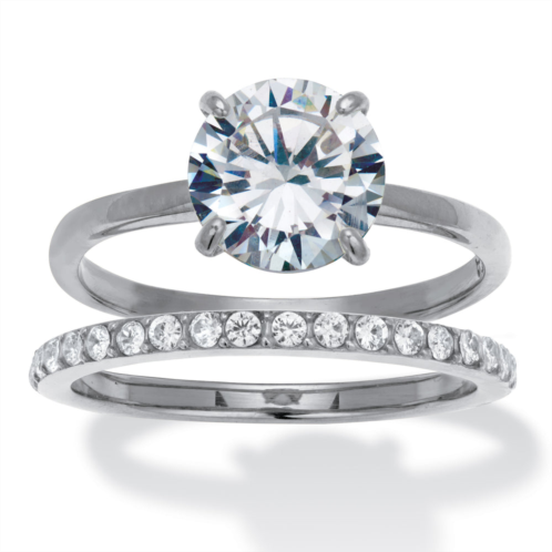 [US] PalmBeach Jewelry 2.85 tcw round cubic zirconia stainless steel pave bridal ring set