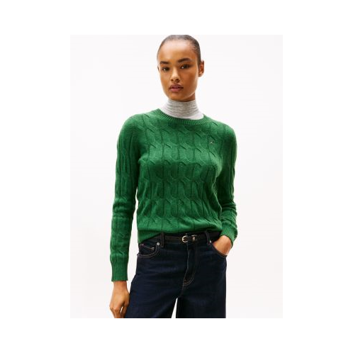 Tommy Hilfiger women's sweater. Go from workdays to weekends seamlessly in this versatile crewneck sweater, made from super-soft pure wool in a classic cable knit.