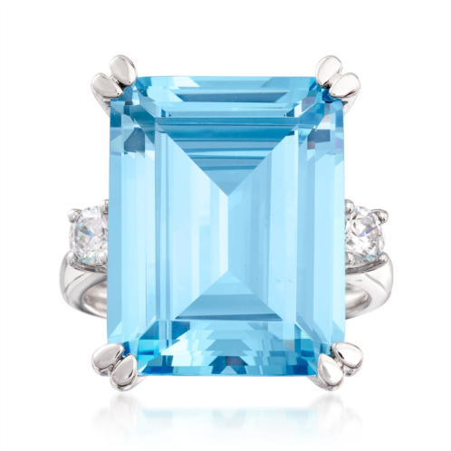 Ross-Simons presents contemporary styles with a timeless appeal. Exclusively ours! Now worn by America's favorite duchess, this royal replica pays tribute to Princess Diana's stunning cocktail ring. A showstopping 17.00 carat simulated emerald-cut aquamarine takes center stage, flanked by a .30 ct. t.w. pair of round brilliant-cut CZs and set in polished sterling silver. An elegant addition to your collection! 3/4' wide. CZ and simulated aquamarine ring.CZ weights are diamond equivalents.Each Ross-Simons item arrives in a fine jewelry presentation box. Shop Ross-Simons jewelry risk-free as all items include a 30-day, 100% money-back guarantee.