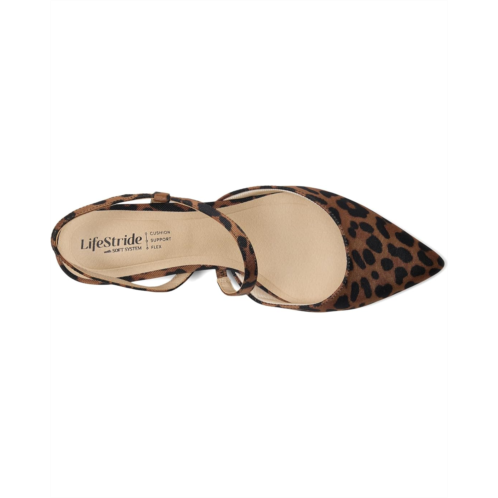 - The seasonless staple. Top off any look with these gorgeous LifeStride Minimalist Strappy Shoes. They are designed with a faux leather upper, pointed toe shape, slip-on fit, and an asymmetrical slingback strap with built-in stretch. These heeled pumps are made of faux leather insole and lining. Their Trusted Soft System comfort technology provides unmatched cushion, support, and flexibility. Styled with an allover animal print, these women's heels pair perfectly with most outfits.