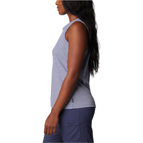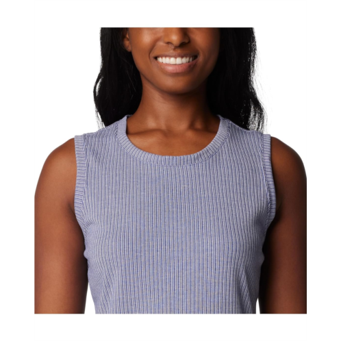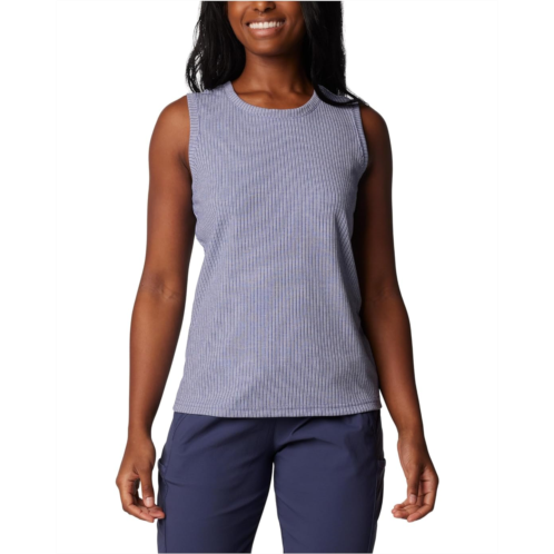 Exhibit stylish athletic look donning the Columbia Crystal Pine Tank is crafted from comfortable and stretchable fabric This top features band detailing on the neckline and armholes, allover ribbed design, and straight hemline.