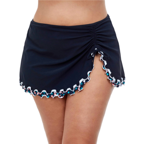 [US] Profile By Gottex plus size side slit cinch swim skirt in gin fizz black