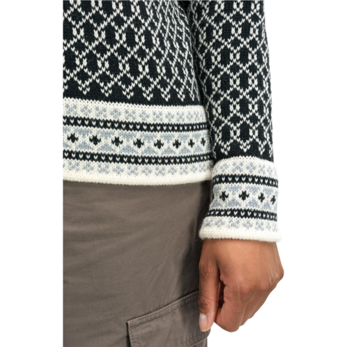 - Cozy up in chic comfort wearing the Dale of Norway Leknes Sweater. A relaxed fit, mid-layer sweater for women with semi-high neck and zipper, detailed Norwegian patterns blend traditional heritage with contemporary design elements. featuring long sleeves, dropped shoulders, regular fit, and straight hem.