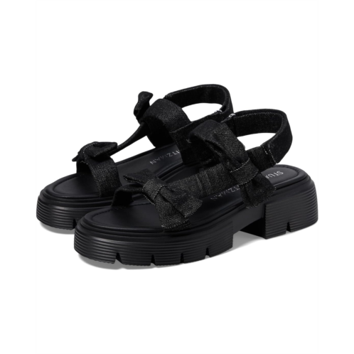 Add a modern look to your outfits without compromising comfort wearing the Stuart Weitzman Sofia Nolita Sandal. The low-top sandals are beautifully designed with a vintage strappy denim upper with double bow detail, thermoplastic polyurethane lining, and synthetic rubber footbed. The hook-and-loop strap at the back offers a secured fit and the chunky block heel craete a statement look effortlessly.