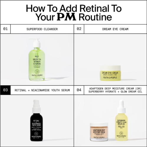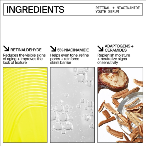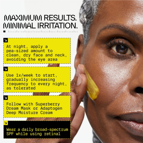 - Niacinamide 5%: Visibly rebalances tone, refines pores, and reinforces skin's barrier to maximize receptivity to retinal.