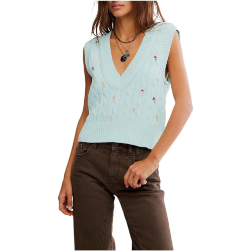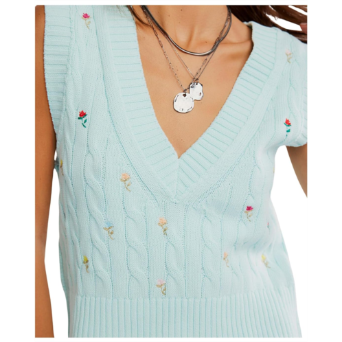 It's all in the details with this adorable cable knit vest adorned with delicate floral embroidery. This pull-on style vest features a V-neckline in a sleeveless design with ribbed trim.