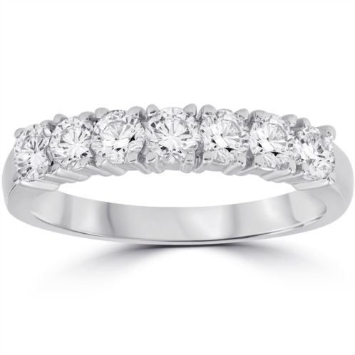 This classic ladies diamond ring features seven round brilliant cut natural diamonds. All diamonds are prong set in 14k white gold. 1ct total diamond weight.