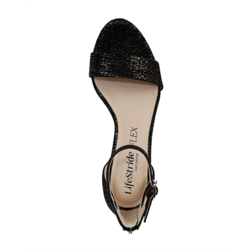 These classic LifeStride Florence dress sandals for women look and feel effortless. The faux leather straps with an open round toe, ankle strap with adjustable metallic buckle and built-in stretch, and back zip closure, are all designed for easy on/off along with a flexible platform. The polyurethane linings are crafted from partially recycled materials and the foam insole with Soft System comfort package provides all-day support, flex, and cushioning. These sleek sandals come with the Fab Flex technology and a super flexible, ultra-padded platform and block heel for ultimate comfort & style. The synthetic rubber traction outsole ensures extra stability.