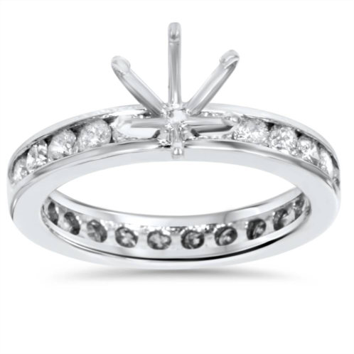 This popular eternity semi mount engagement ring features round brilliant cut natural diamonds that encircle the entire ring. All diamonds are channel set in solid 14k white gold. We can supply a setting for round or square stones up to 1ct. Larger shapes and sizes are available, email us for a quote. All finger sizes contain at least 1 1/2ct total diamond weight.