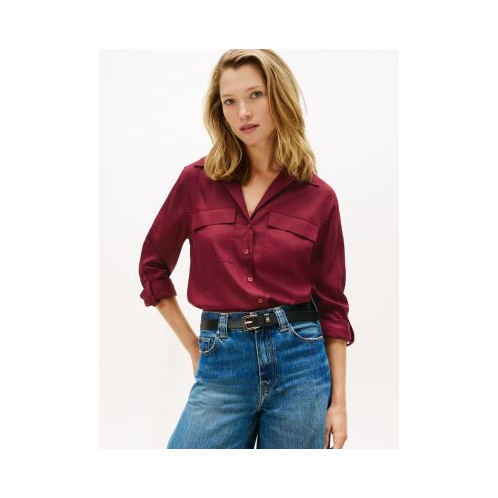 Tommy Hilfiger women's shirt. for work or weekends, our utility-inspired shirt features chest pockets and adjustable roll-tab sleeves. Made from lightweight, smooth lyocell, this piece falls with a flattering drape.