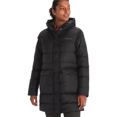 - Puff up your adventure game on the mountains wearing the warm and protective Marmot Strollbridge Parka. is designed using a water-resistant 700-fill-power down with Down Defender for insulative warmth. Featuring a snap-button overlay, it has two-way front zipper that helps with airflow adjustment to regulate internal temperature.