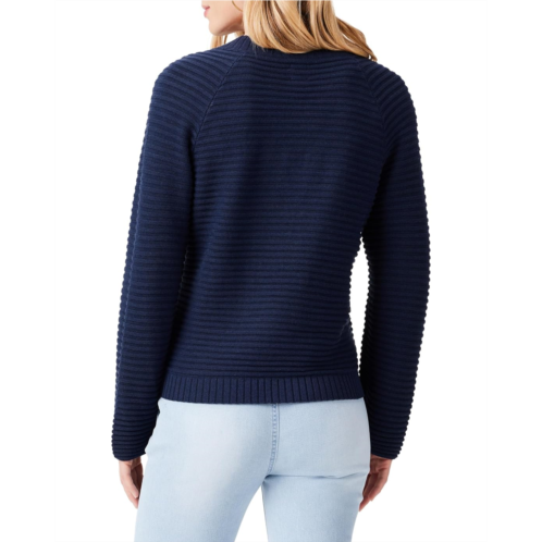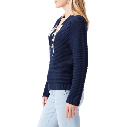 Wrap yourself up in cozy comfort and exude an uber-chic style wearing NIC+ZOE Sailor Sweater that offers a relaxed fit. The midweight sweater comes in a knit in garter rib pattern and features a V-neckline with contrast laces at front, long raglan sleeves, and straight ribbed hem.