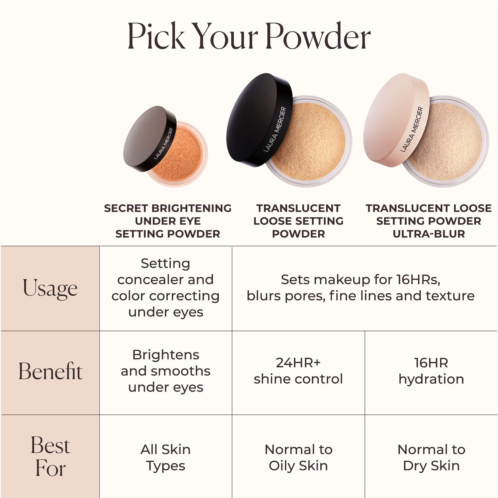 What it is:A talc-free loose setting powder that is infused with hydrating hyaluronic acid for comfortable, up to 16-hour wear and ultra-blurring power that is best for dry to normal skin types.