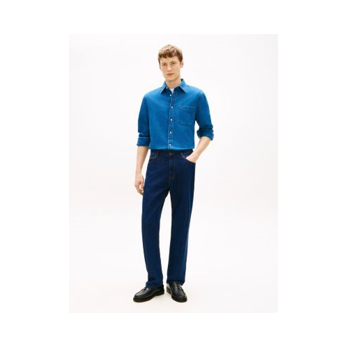 Tommy Hilfiger men's jean. Sport a throwback look in these old-school rigid denim jeans, cut in an easy, relaxed straight-leg fit with timeless five-pocket styling.