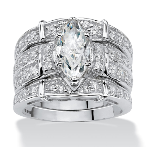 Exquisite marquise-cut and round cubic zirconia wedding ring set offers 3.05 carats T.W. of extravagant glitter set in stunning sterling silver. Sizes 6-10. We recommend that you order one size up for this style. (All carat weights are approximate and may vary slightly from those listed.)