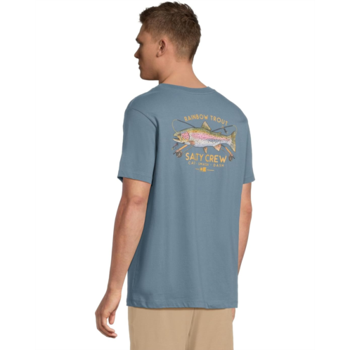 - Hooked on adventure wearing Salty Crew Trout Mount Short Sleeve Tee. Crafted from premium three singles combed ringspun cotton, this tee offers a luxuriously soft feel that lasts through every cast, wave, and weekend hangout. The classic fit, crew neck, and short sleeves keep your look effortlessly cool and relaxed, while the screenprinted front and back graphics showcase your love for the salt, surf, and stories that come with it. Designed for easy pull-on comfort, this tee captures that carefree, sun-drenched vibe whether you're out chasing trout, cruising the coast, or kicking back dockside.