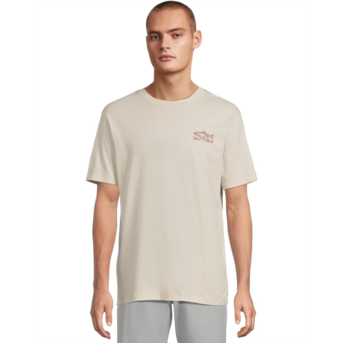 - Hooked on adventure wearing Salty Crew Trout Mount Short Sleeve Tee. Crafted from premium three singles combed ringspun cotton, this tee offers a luxuriously soft feel that lasts through every cast, wave, and weekend hangout. The classic fit, crew neck, and short sleeves keep your look effortlessly cool and relaxed, while the screenprinted front and back graphics showcase your love for the salt, surf, and stories that come with it. Designed for easy pull-on comfort, this tee captures that carefree, sun-drenched vibe whether you're out chasing trout, cruising the coast, or kicking back dockside.