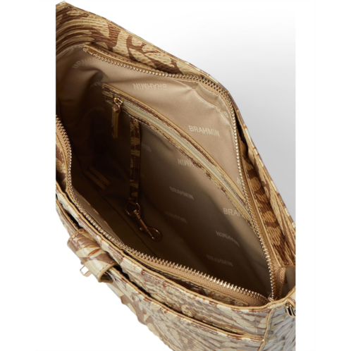- Rise to the occasion carrying the Brahmin Leia. Crafted from leather, this bag features detachable and adjustable crossbody strap, zippered closure, front pocket with tab turn lock closure, d-ring on strap for clip-on accessories, one zippered interior pocket, and one kangaroo pocket. It comes with interior key-clip.