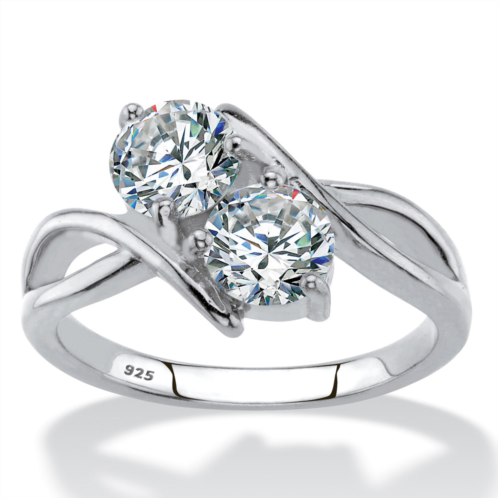 [US] Palm Beach Jewelry 1.96 cttw cubic zirconia .925 sterling silver 2-stone bypass ring