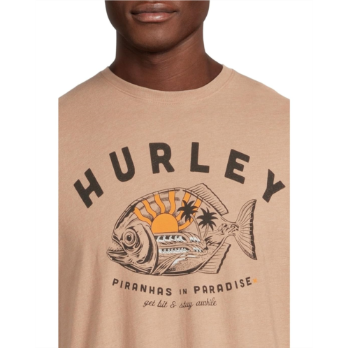 - Stand out from the crowd choosing the Hurley Piranhas Short Sleeve Tee. Featuring an eye-catching piranha-inspired graphic that channels Hurley's surf-punk edge, this tee is built for those who live life with bite. Crafted from soft, breathable cotton and cut in a relaxed fit, it features a crew neckline, short sleeves, and a straight hem.
