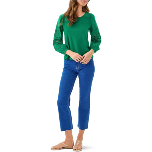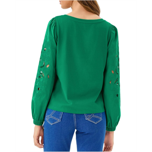 - Effortlessly chic with a playful touch! The Lilly Pulitzer Isley Knit Top brings timeless style and modern flair together in one versatile piece. Featuring a classic straight fit and a flattering scooped neckline, this top exudes elegance with its woven, blouson sleeves and elastic cuffs for a graceful silhouette. The intricate custom eyelet and embroidery details on the sleeves add a signature Lilly touch, perfect for elevating your everyday look. Comfortable yet sophisticated, this knit top is your go-to for casual outings or dressed-up occasions, bringing the perfect blend of style and charm to your wardrobe.