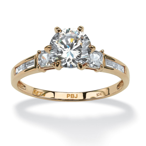 Contemporary yet classic round cubic zirconia ring is treated to a stunning combination of princess-cut and baguette cubic zirconia accents for a superb fashion look. 2.14 carats T.W. in solid 10k gold. Sizes 5-10.
