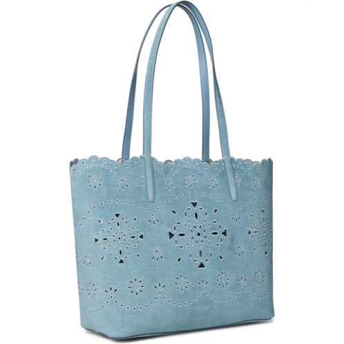 [US] Kate Spade New York Do It All Spade Flower Perforated Denim Large Tote Bag