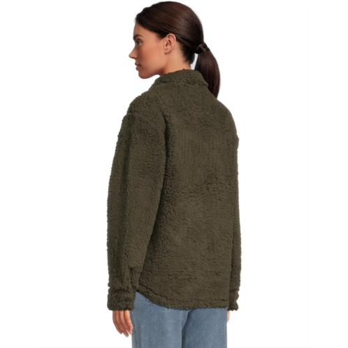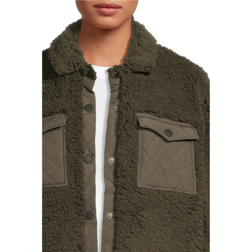 - The Salty Crew Calm Seas Shacket is a fully lined plush sherpa jacket with a snap-front closure, hooded pockets, and metal branding at the chest pocket. It has a collared neckline, long sleeves, two button-flap chest pockets, and a curved hem.