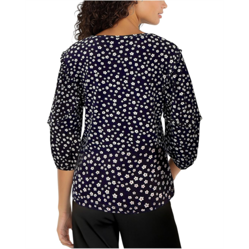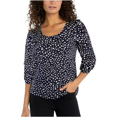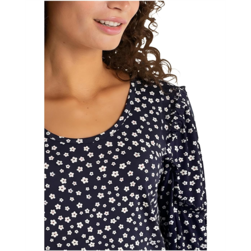 - Enhance your outfits with the Liverpool Los Angeles Mid-length Ruffle Sleeve Scoop Neck Knit Top, featuring a charming ditsy floral print that adds a refined touch to any look. This printed top is made from a jersey knit for a comfortable feel. It is styled with elbow-length sleeves, elasticized barrel cuffs, a scoop neckline, and a straight hem. This versatile piece is suitable for any occasion, allowing you to dress it up or down as needed.