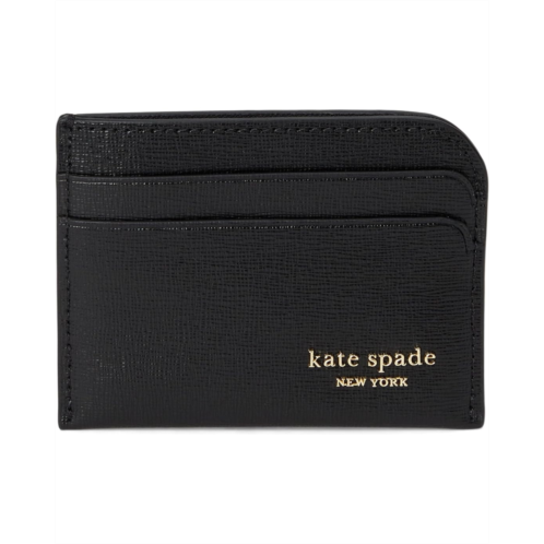 - Showcase streamlined sophistication with the sleek Kate Spade New York Devin Saffiano Leather Card Holder. With a smooth cow leather construction, it features three card slots and open top design.