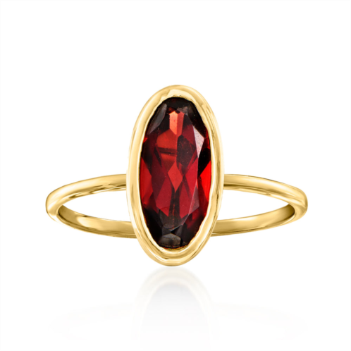 A top-rated jeweler since 1952, Ross-Simons travels the world to find high-quality styles at the best prices. Deep cherry-red sparkle beams from this elongated 2.30 carat oval garnet ring. Crafted in polished 14kt yellow gold on a simple and slender band. 1/2' wide. Garnet ring. Each Ross-Simons item arrives in a fine jewelry presentation box. Shop Ross-Simons jewelry risk-free as all items include a 30-day, 100% money-back guarantee.