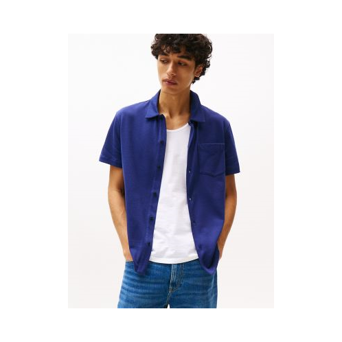 Tommy Hilfiger men's shirt. A fresh spin on tradition, this button-up shirt is made from a lightweight, textured cotton knit that feels exceptionally soft.