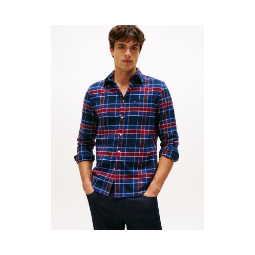 Tommy Hilfiger men's shirt. Cut in an easy fit, this brushed cotton twill flannel shirt is ideal for transitional layering. This iteration is finished in a classic plaid print.