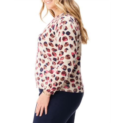 Donne the warm and beautiful NIC+ZOE Plus Size Blush Dot Sweater for casual day outs and feels lightweight and sits at the hip. The sweater features a round neck, long feminine-shaped shoulders and sleeves with pleat detail at top of sleeve, a solid color stripe on the collar's interior, and an allover printed pattern.