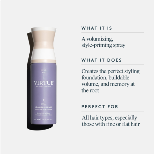 What Else You Need to Know: Virtue’s Volumizing Primer is a weightless spray formulated to build volume and create the perfect foundation for style. This light mist works to create memory at the root and architect your style for all-day hold. This unique formula also protects against heat and environmental damage. The revitalizing citrus floral blend features leafy greens, flowers, and fruit, including white pear notes, stimulating spearmint leaf, and bright, lemon essential oil