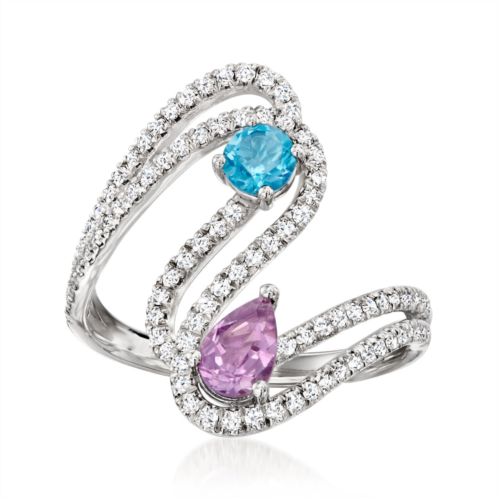 [US] Ross-Simons amethyst and . swiss blue topaz swirl ring with . lab-grown diamonds in sterling silver